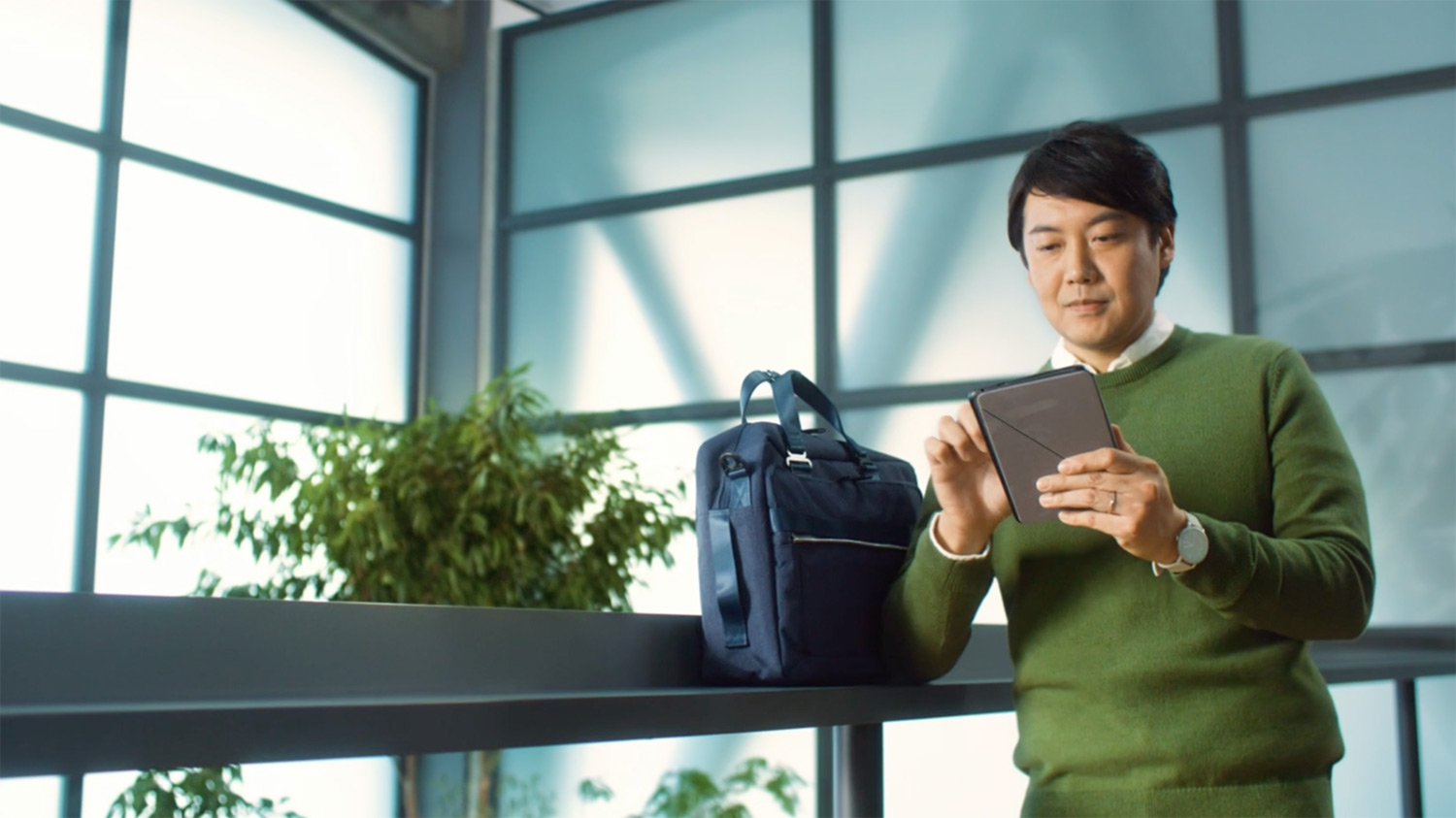 The concept contained both an Adult focused and Kids focused directions, as both variants of the device are sold to separate target audiences. For the Kids scene, a child and his mother interact with the device over breakfast. For the Adult scene, we feature both a man mid-commute, easily removing the device from his bag, as well as and a woman in a cafe setting with a focus on overall lightness and portability.